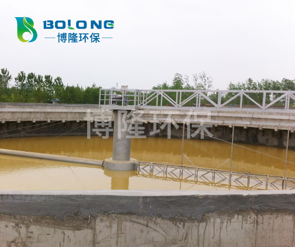 待處理的水從中間筒進水管進入,通過穩流筒穩流進入沉淀池然后向四周擴散沉淀,清水由池邊溢流堰流出,其中沉淀物由刮泥板集中到吸泥口,經壓縮空氣擾動混合和增加氧,增加了污泥活性,根據連通管原理,利用水位差將池底污泥吸入排泥槽,通過虹吸管進入中間筒排泥管排出。同時池中浮渣由刮板收集經排渣斗排出池外。